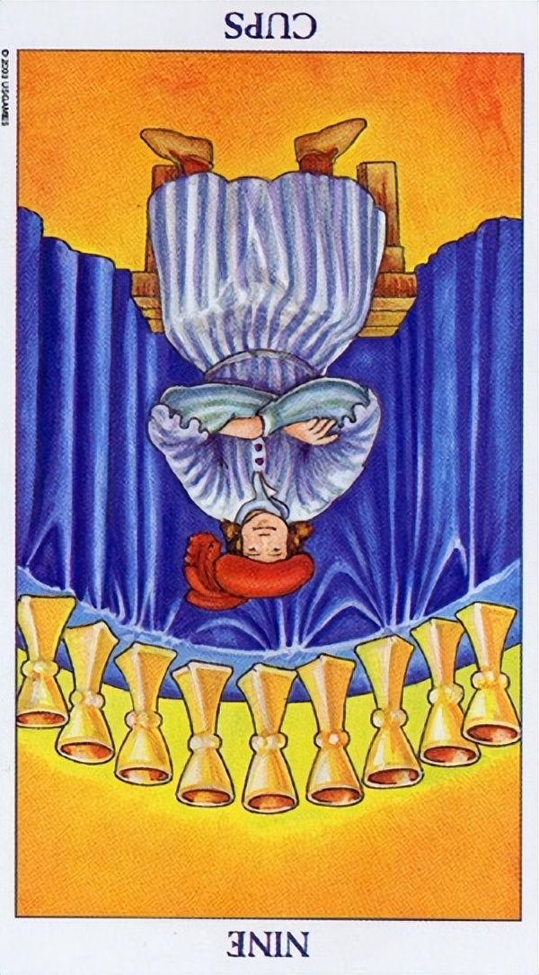 分析:牌面上的人身後有著九個聖杯,他都留著不捨得丟棄,並且聖杯代表了情感也意味著,即使是現在,他回想起過去的人,心裡都還是有感情的,還是有所留念,甚至算得上念念不忘的。但聖杯九處於逆位,也意味著這些還沒放下的感情是比較淡了罷了,並不是非常濃烈,只是還有存在,放心裡想起來還會有點在意。