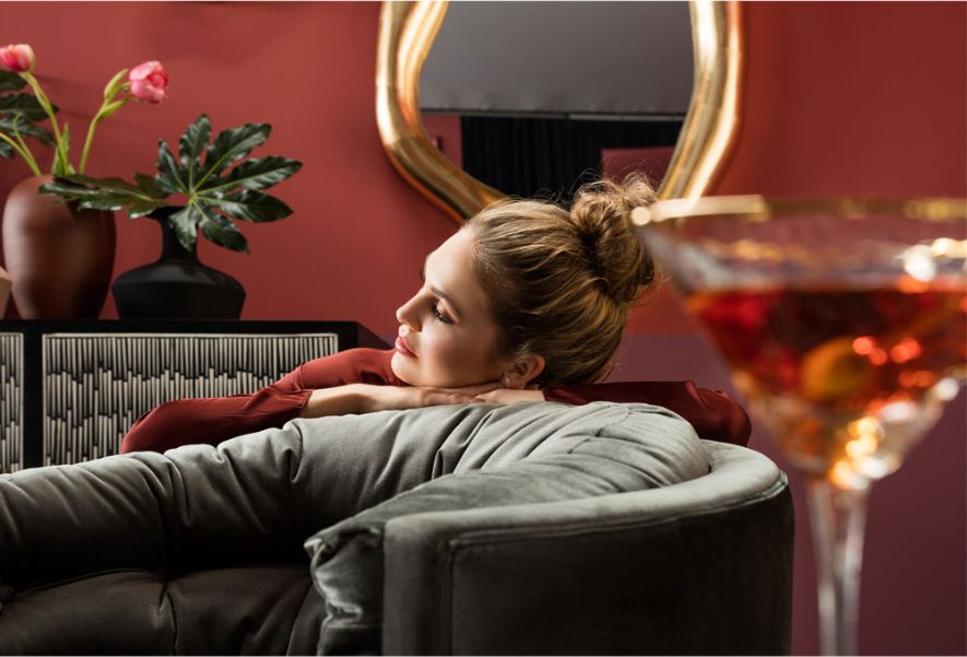 設計師從過去迷人的酒店大堂中獲得靈感,以天鵝絨、黃銅和水晶等豪華材料營造了這個空間令人嘆為觀止的外觀。優雅藍調帶來了一種鼓舞人心和放松的氣氛,身處其中,就像在忙碌一天結束時在一個高級VIP休息室喝雞尾酒般愜意。
