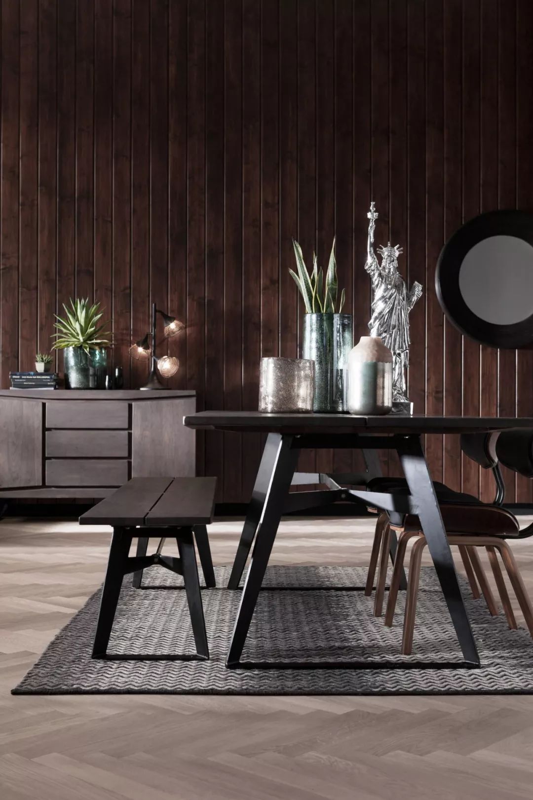 褐色、灰色和金屬色調有著優雅的外觀,當它們遇上深色的木材,鐵和皮革時,即當天然材料和現代優雅的設計結合在一起時,這就組成了吸引眼球的家。
