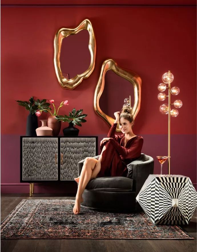雞柔和的尾酒紅與濃烈的玫瑰色讓人過目難忘。色彩有著夏天般的熱情,就像烈焰紅唇邊的那一縷幽香,在玫瑰色的液體流轉… …柔軟的天鵝絨,珍貴的大理石,閃亮的金屬和手工細節無一不反映了設計師的用心。