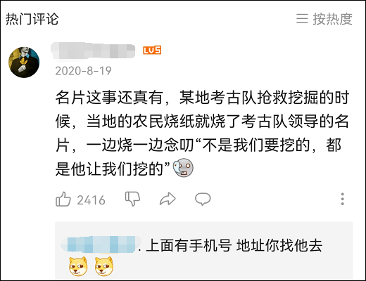 而當天,微博認證為河南省文物考古研究院考古挖掘隊領隊的博主@考古小隊長 也「證實」,「剛才一位前輩說他們幾十年前真幹過,不過不是塞名片,是說有事找上級主管,我們只是幹活的」。結果,之後還真發生了一個故事:「那個上級主管真的病了……挖掘結束才好。」