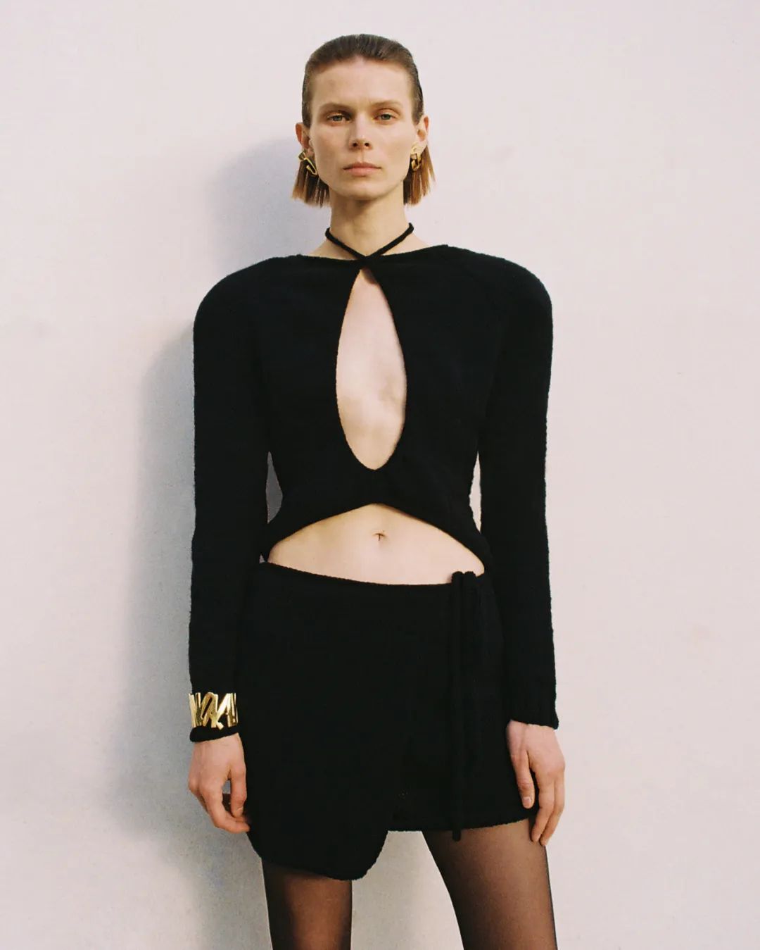 在你的作品中,我們發現了迷幻色彩,能告訴我們你的創作過程嗎? 我的工作方式是非常混亂和自發的,但同時也非常有機。我從大量研究開始,然後通過素描來思考。我主要在人臺上做立體剪裁,同時我試圖通過紡織實驗來轉化這個想法。在你想出 一些新的和獨特的東西之前,你需要經歷很多錯誤和不成功的嘗試。對我來說,這是一個非常有機的過程,就像拼圖一樣。我不斷更新產品陣容,我喜歡織物對身體的沙沙聲。我的衣服與線性或對稱無關。對我來說,完美的對稱或完美的合身看起來有些做作。