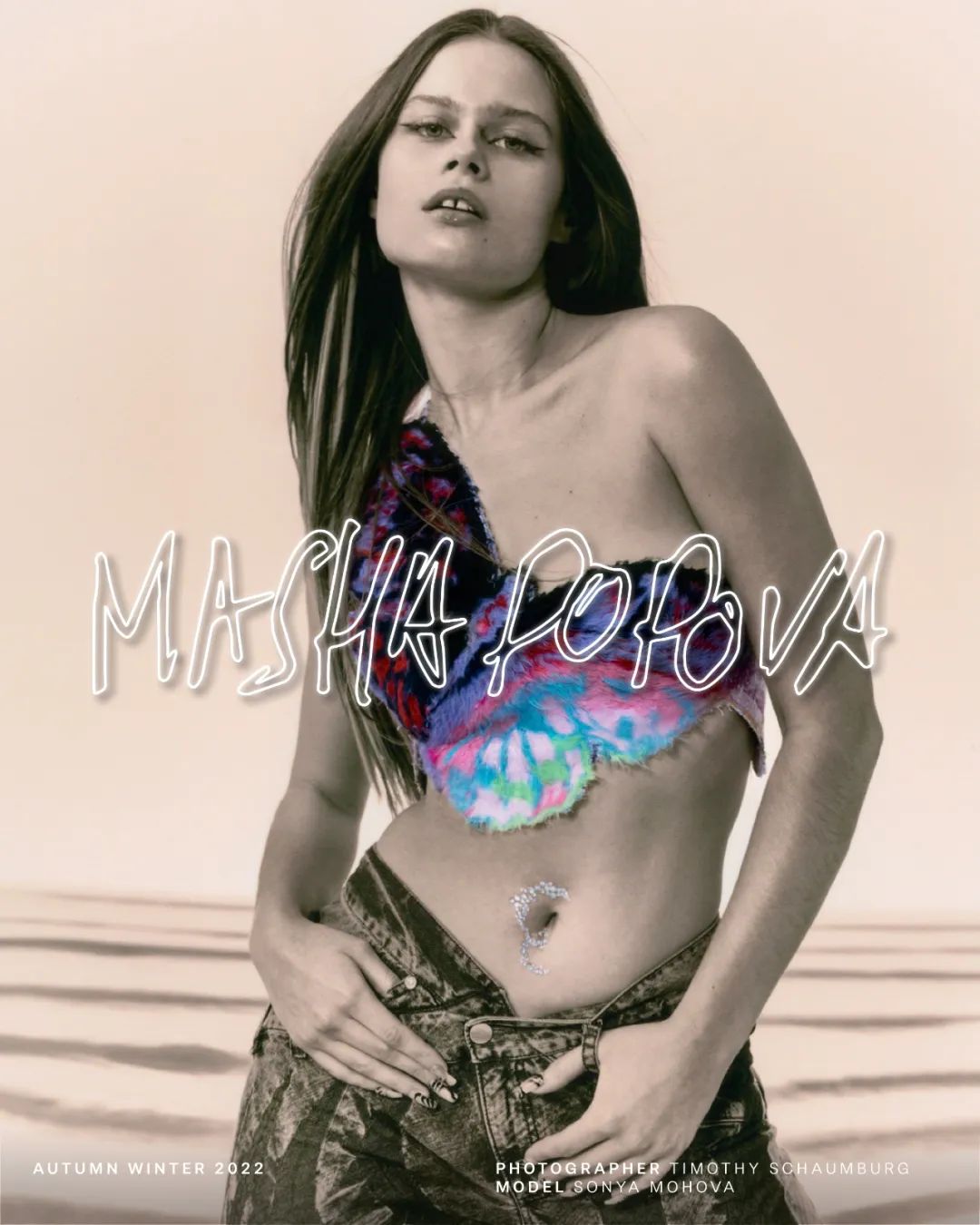 MASHA POPOVA以一種對性感的不羈態度,用適量的無序行為來形容光鮮的時尚—創造出色彩繽紛、混亂無章的紡織品,以它們的不完美為樂。我的目標是讓無聊變得有趣。