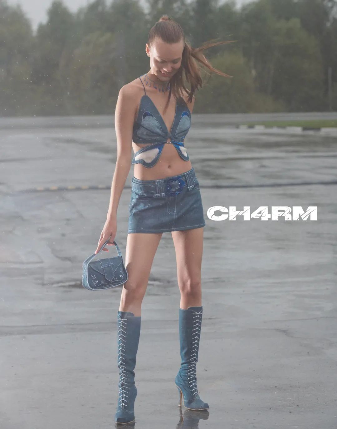 CH4RM是一個由Nikita Chekrygin掌舵的新興時尚品牌,它將早期的Y2K(千禧年流行趨勢)與東歐的美學結合在一起,產生了一些不可抗拒的東西。有點像你高中時迷戀的偶像組合,在你的腦海中揮之不去。Chekrygin2017年推出該品牌時,隻作為朋友間的實驗項目。設計師本人一直對縫紉很感興趣,從小看著她的母親(一名裁縫)制作定制產品,緞面緊身胸衣、柔和的色彩、極低腰牛仔褲和可以直接從R&B中提取的俏皮語錄:「讓我們隻保持在線」、「壞男孩他們最好的行為」, 「我們都輸了」……但懷舊當然不是該品牌的唯一焦點, CH4RM是關於當下和未來的。