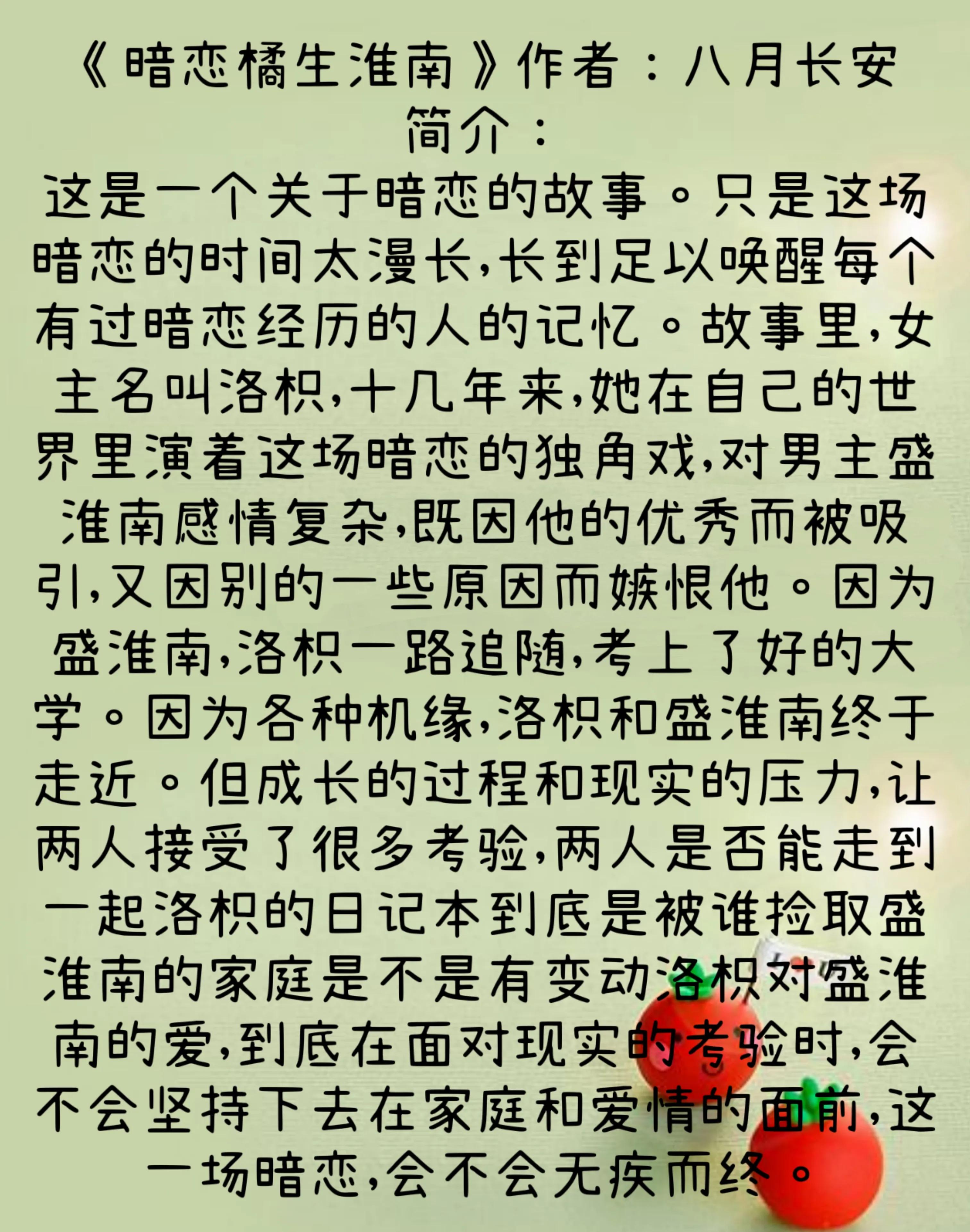 8、《暗戀橘生淮南》作者:八月長安