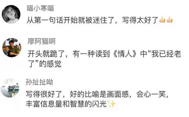 還有網友說自己是被第一句迷住了,然後看下去發現這確實是一篇水準很高的作文,不像是小學生能寫出來的。
