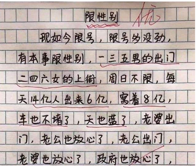 小學生作文《限性別》,畫風搞笑,老師給出高度肯定