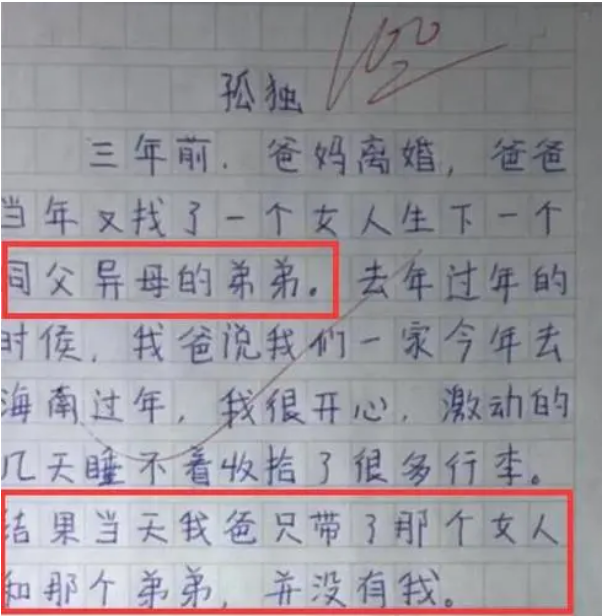 在各式各樣的小學生作文中,總是有那麼幾篇能夠在第一眼就抓住讀者的眼球,有時候會讓人們感嘆:這似乎不像這個年紀能寫出來的文章,不過凡事總有例外,確實有一些小學生的心思足夠細膩,表達手法也很老練,讓人看後能夠產生共情。