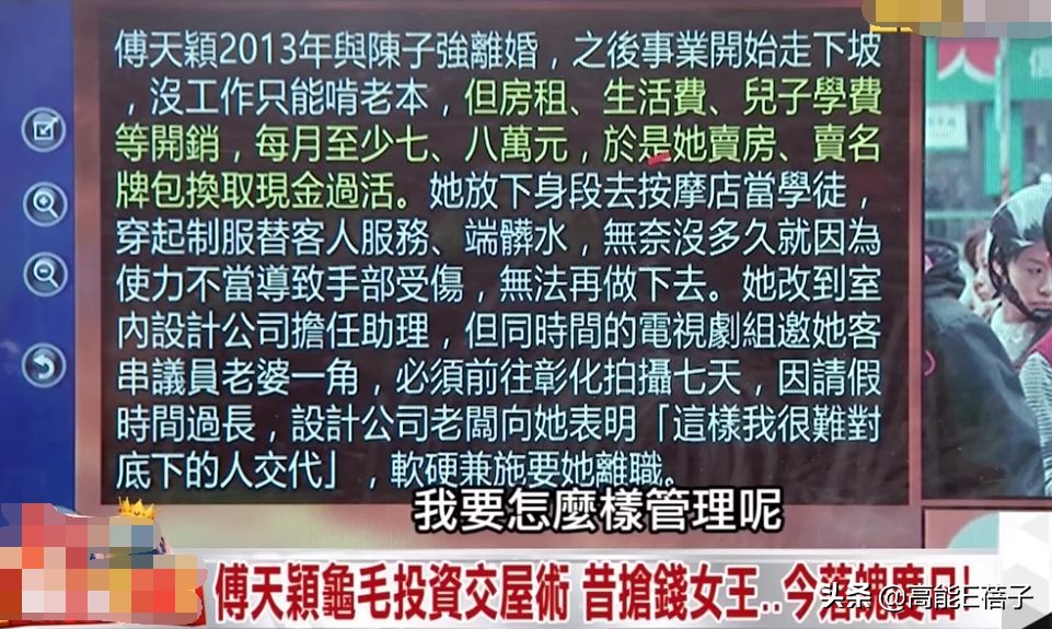 從這之後她事業走下坡,沒工作只能啃老本,可生活開銷不小,她只得把房子一套套賣掉,還要去按摩店當學徒。