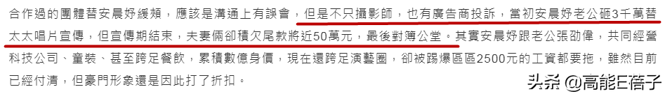 結果他們被廣告商控訴唱片宣傳費有50萬尾款未結……