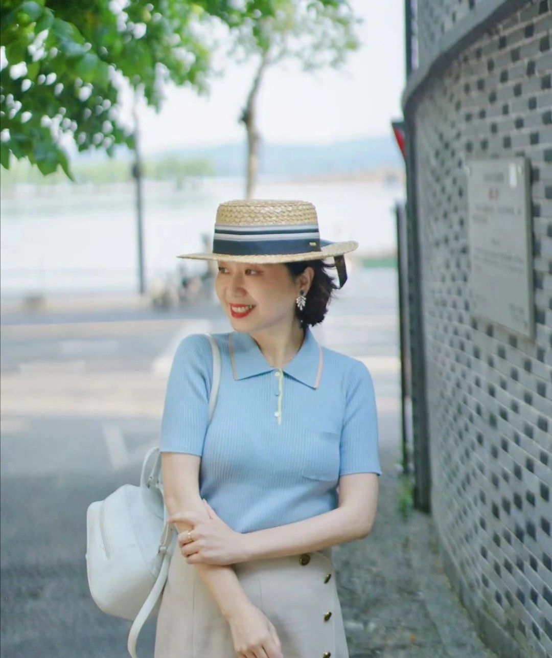 這些都是適合四十多歲女性的穿搭,採取減齡的顏色,形成清爽的造型,除了綠色之外,藍色也是可以頻繁亮相的「嘉賓」,很少產生花哨感。