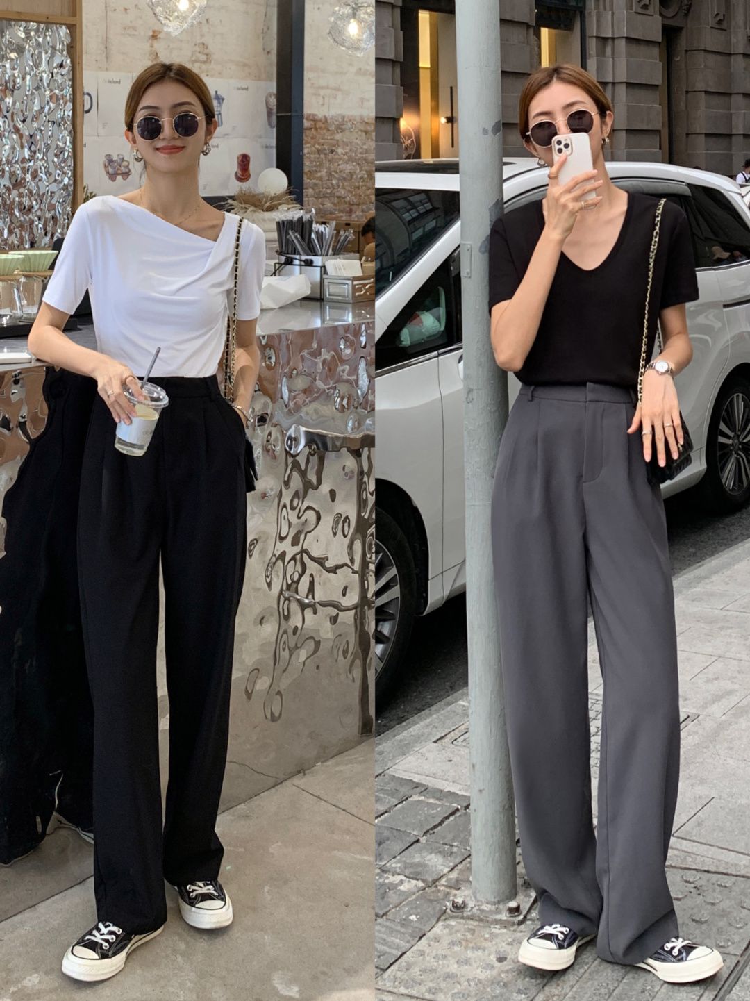 在穿褲裝的時候,大家其實也可以用這些淺色的服飾去凹造型,例如淺藍色的闊腿褲,穿在身上就會顯得很清新脫俗,這種淺色的單品在這個時候穿還是很出彩的,推薦搭配小白可以試試。