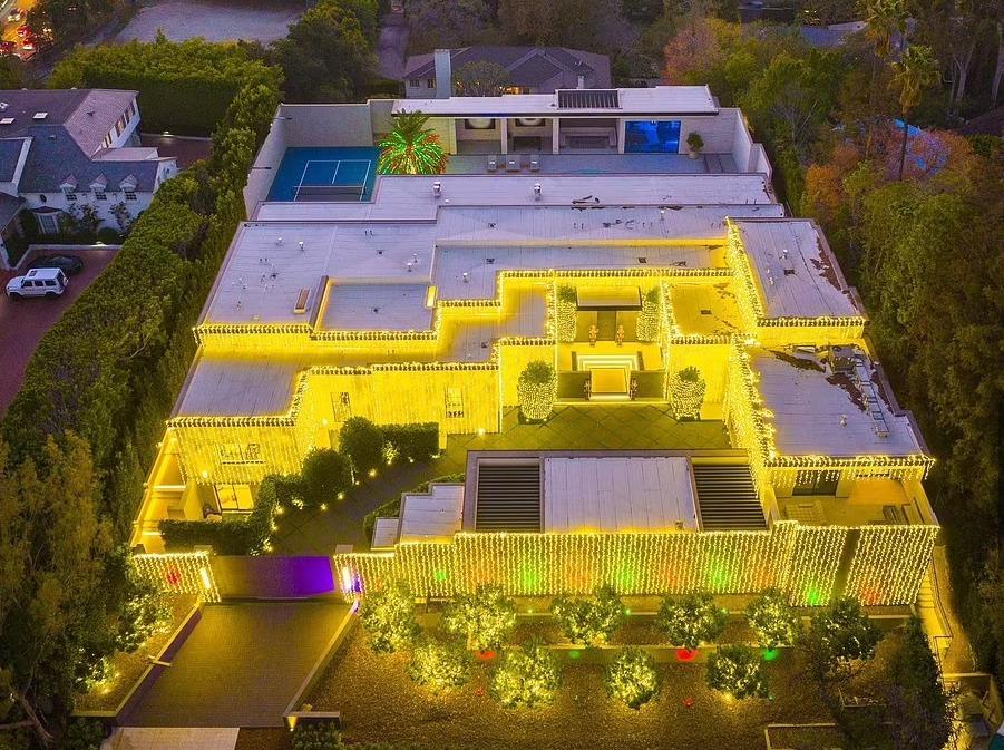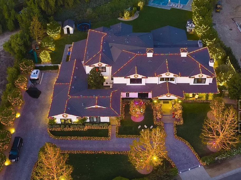凱莉的另一個豪宅也是聖誕風滿滿,被花團錦簇的燈光環繞。