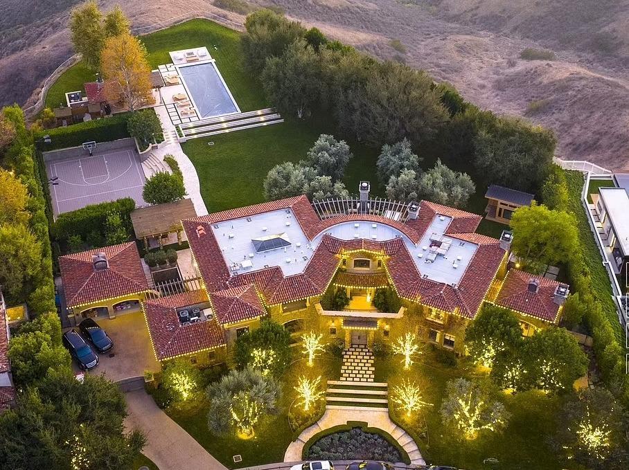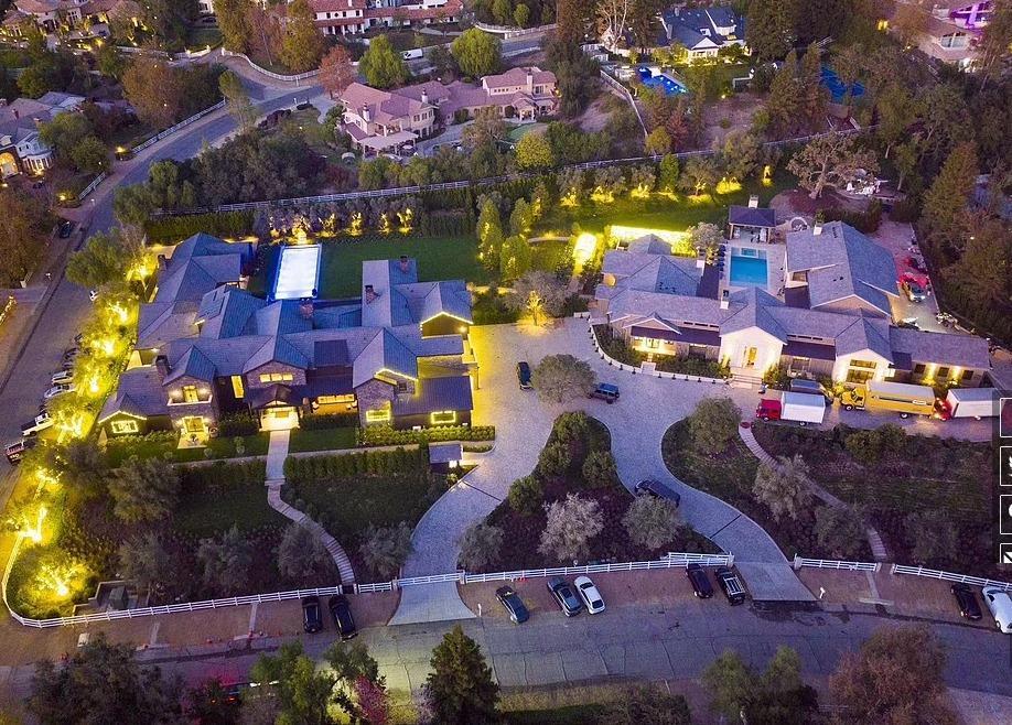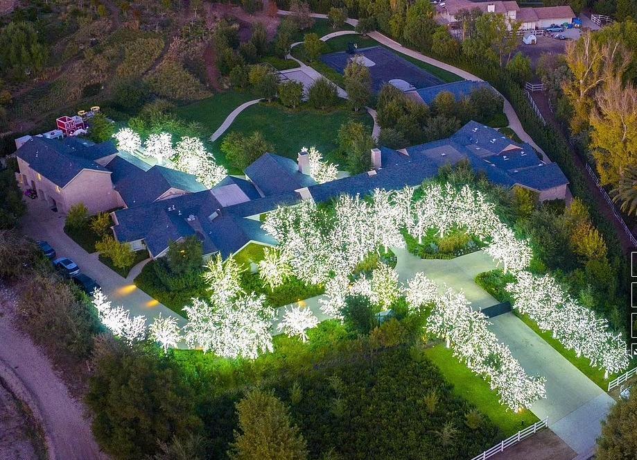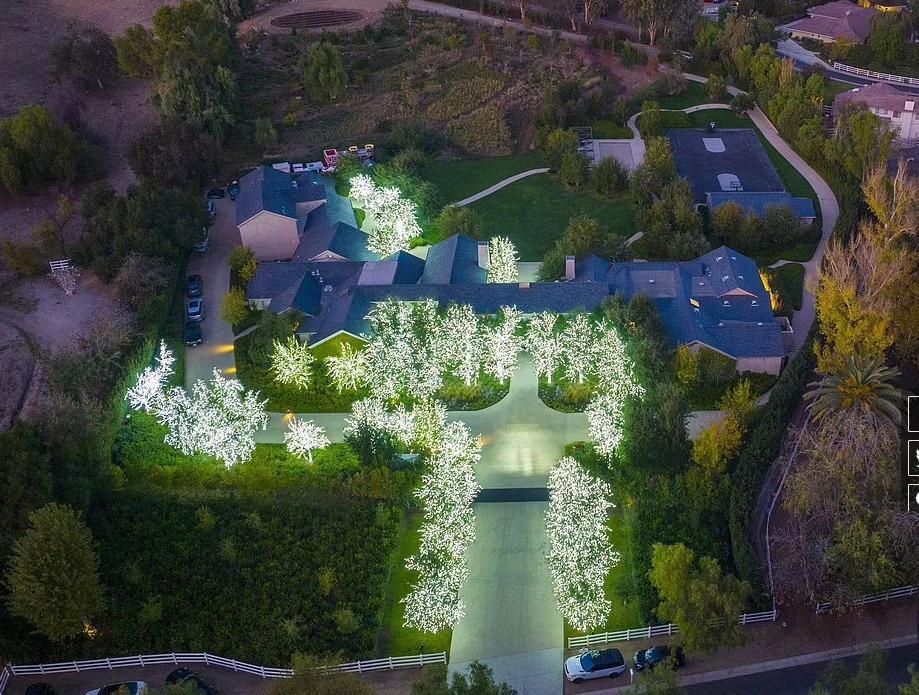 金卡戴珊家,數千展閃閃發光的燈覆蓋了豪宅的樹木,
