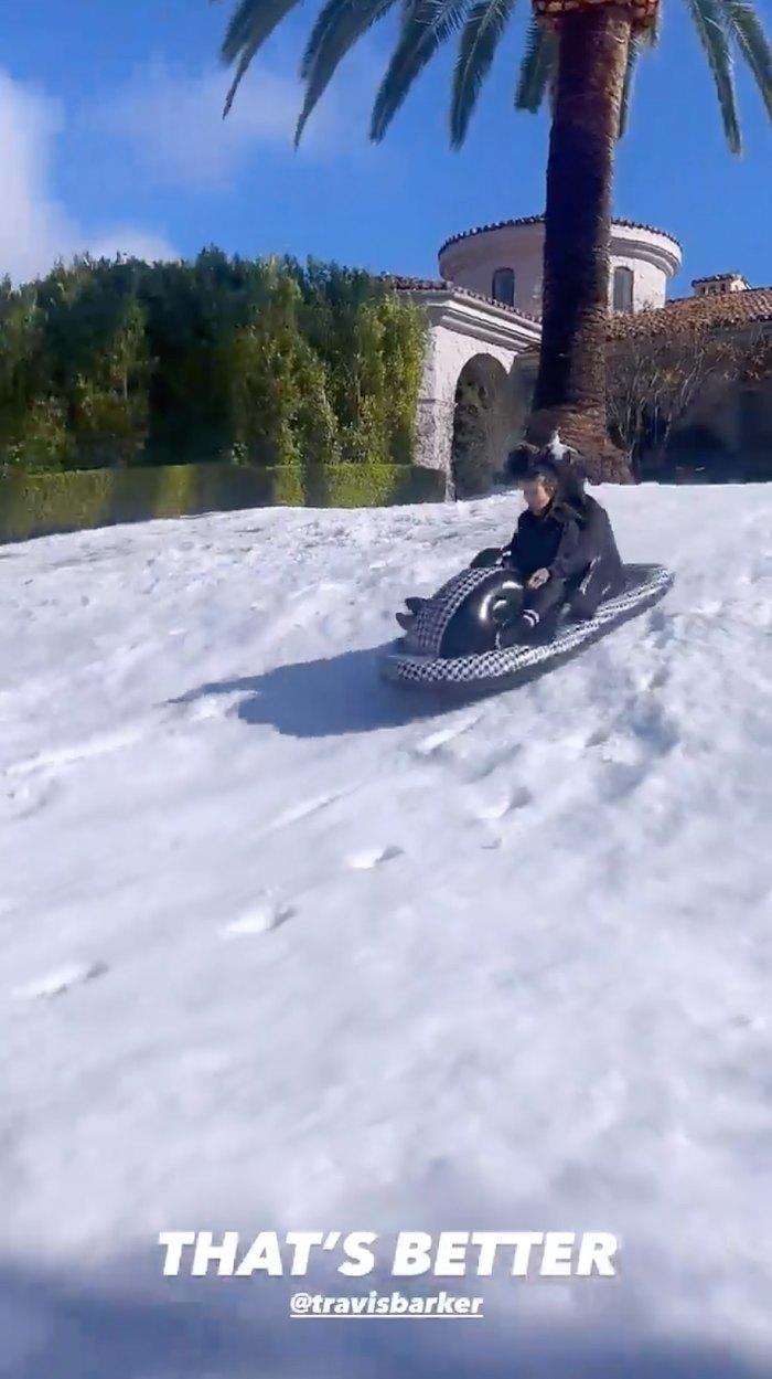 大姐和鼓手未婚夫一起滑雪橇,完成了當天的秀恩愛指標。