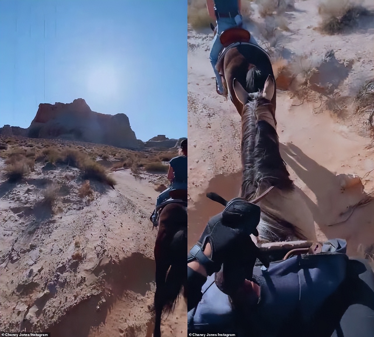從錢妮分享的視訊截圖看,她和侃爺在曲折不屈的沙漠小路上騎馬前行,雖說看上去有些艱苦,但這也是到「靜修之所」必備的一個項目。