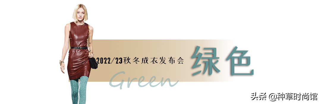 在這次發布會裡沒有以綠色為主色的成衣,反而可以看到大量的青綠色針織襪,好像和什麼顏色都能搭得上~