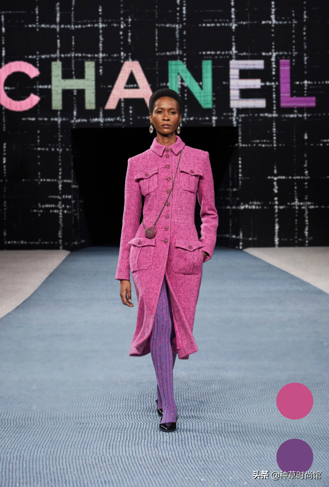 那麼今天,本妮就借Channel這次的秀來跟你們說一說,日常穿搭配色的萬能公式,拯救你的壓箱底彩色單品也很簡單哦~