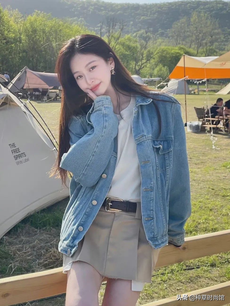 還可以像妮妮子這樣在外面披一件外套,低調保暖還顯身材。(春夏過渡期,早晚還是挺涼的)