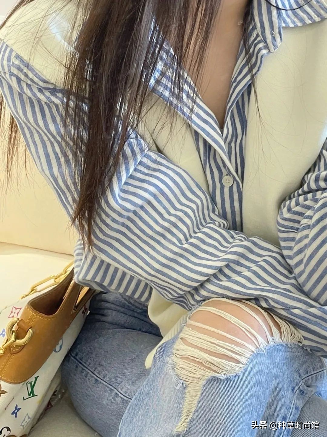 條紋襯衫和格紋款比起來,雖然看上去差別不大,但上身效果可明顯不同,條紋款會更加正式一丟丟。