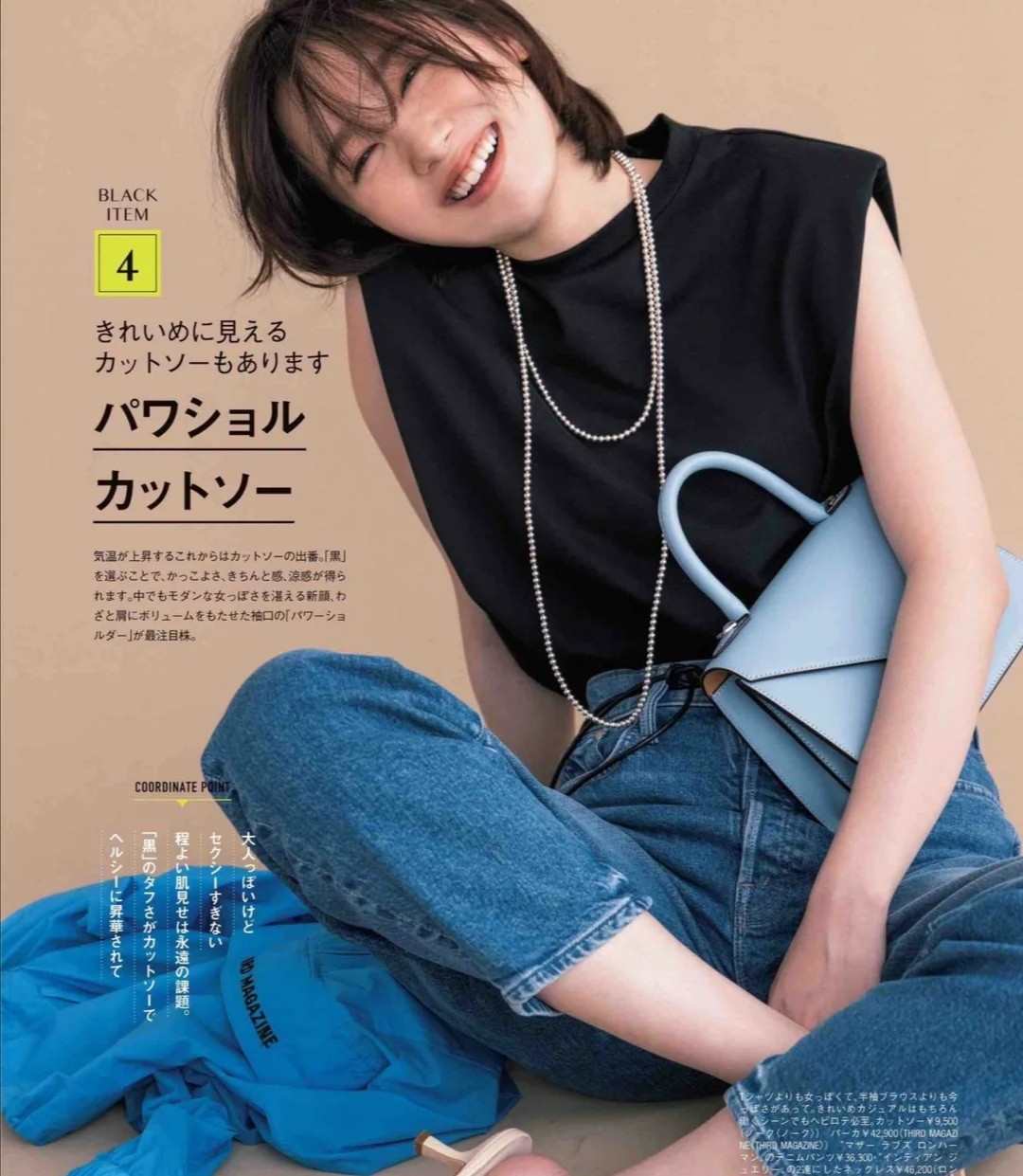 但是,在具體的色彩的選用和服裝的輪廓選擇上,還有很大的發揮空間。這一組穿搭最接地氣,利用黑色無袖T恤呈現舒適感,借助藍色牛仔褲展現休閒氣質。並且通過這種大家都熟悉的冷色調,減輕黑色的單調感和枯燥感。