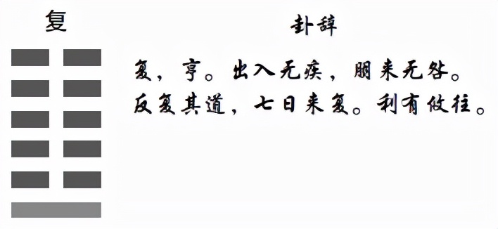 復卦卦辭說:復,亨。出入無疾,朋來無咎。反覆其道,七日來復。利有攸往。