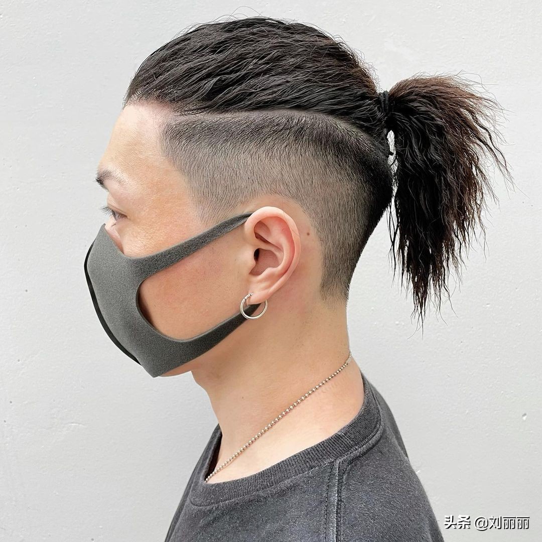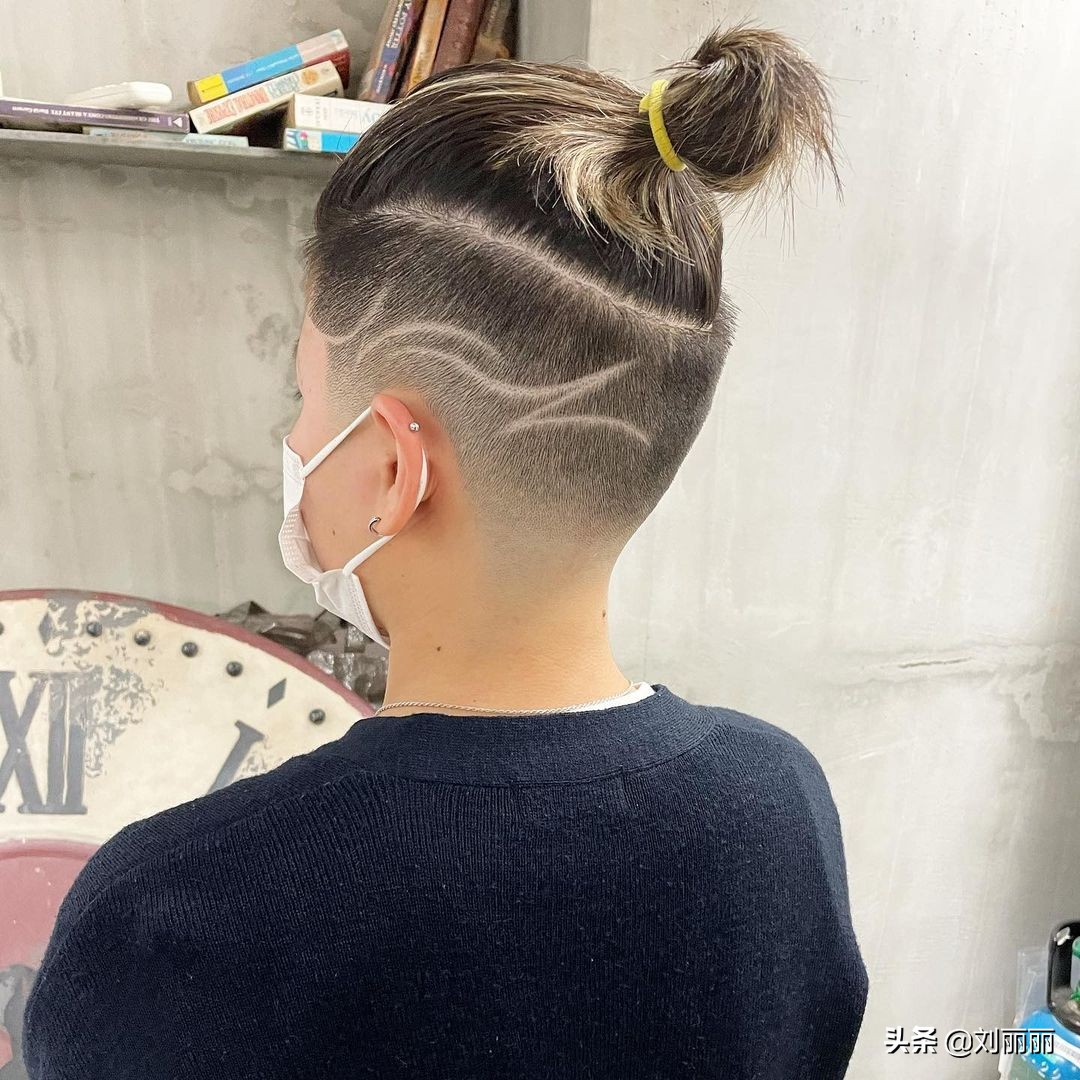 還可以選擇推一半,上邊一半留長,來個紮發造型,帥的也很有藝術范。