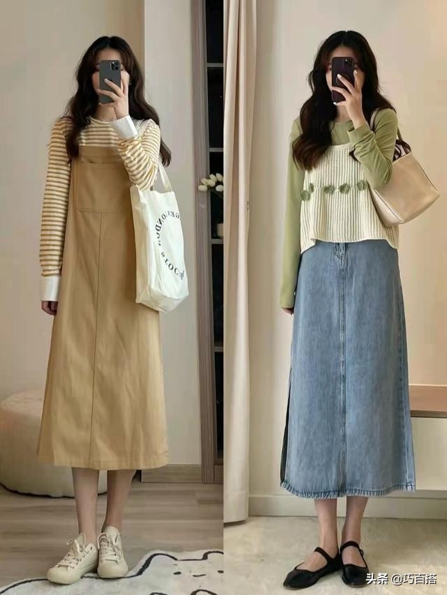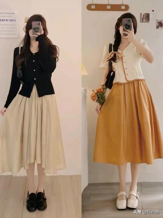 色彩豐富的小裙子,擔心自己的膚色不能駕馭,上身反而顯土顯俗。借助不挑膚色的低飽和色上衣,既能顯得膚色白淨,還能穿出1+1>2的時尚風采!
