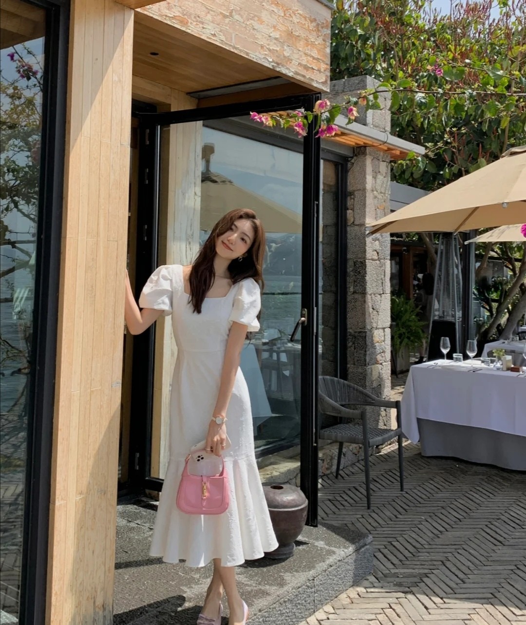 這條白色連衣裙看似不爭不搶,平淡如水,實際上卻蘊含著很強大的能量讓人們對其情有獨鐘,為之傾倒。顏色的形成純淨且大方,方一些的領口和寬一些的袖管,共同碰撞出了優雅的風采。不僅美化了頸部線條,也能讓整個身材的厚度被削弱。