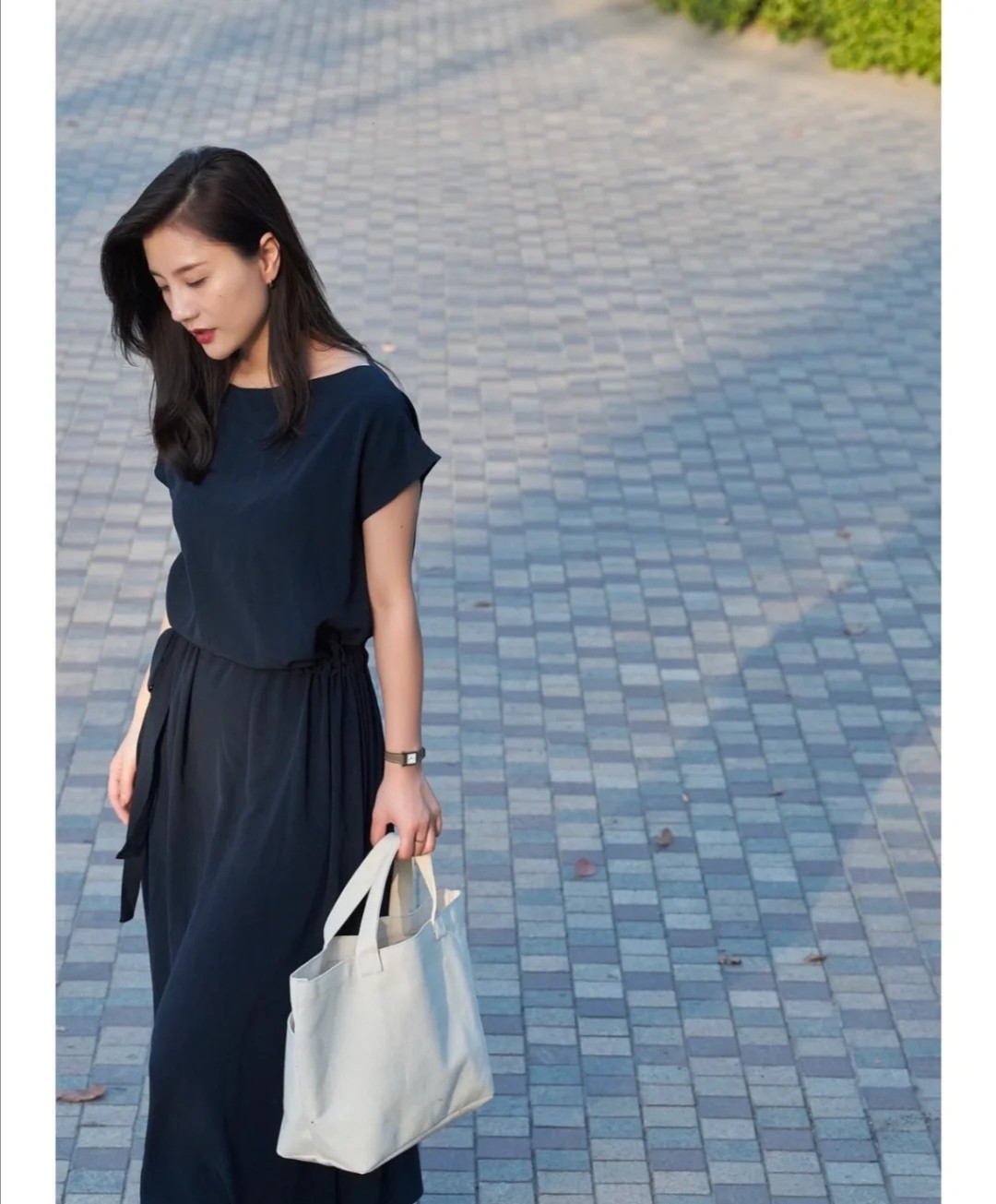 像這條黑色的連衣裙,不管身材胖瘦都可以駕馭,並不會攜帶辨識度,但這種服裝卻能永遠地在衣櫃占據穩固地位。別看它的設計簡單,實際上在細節之處,尤其是在腰間,擁有收攏的設計,刻畫出明顯的線條,又具備過膝的裙擺,遮蓋雙腿,呈現大氣美與氣場。