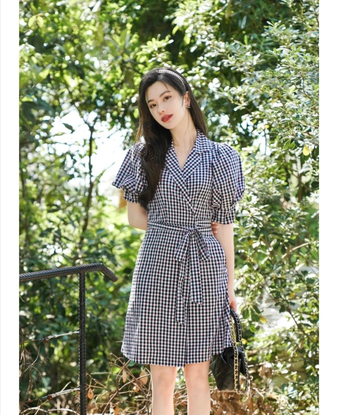 像這條格紋連衣裙,除了格紋的元素讓它的表面不會單調之外,袖子的設計也會更加別致,呈現出一定的空間感,打造出少量的膨脹性,讓著裝更有復古特點,更有法式韻味。