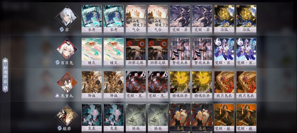 二勾點人一般優先百目和鬼童丸開覺醒,要是時機合適也可以般若覺醒鬼襲先站場賣掉,除開慢速對局鬼童丸一般覺醒狂殺切後卡三(因為我們三勾點只有鬼衣所以我們一定不要讓鬼童丸殘血在後排掛機,被卡三勾前解就會很難受)。