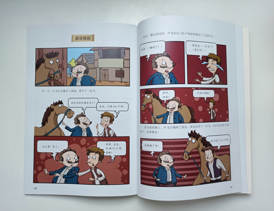 在「退貨難題」這章中,就講了一個名叫葉戈爾的男人在市集上花高價格買了一匹馬,他以為自己賺了,殊不知他虧大了!導致這樣的壞情況發生,主要原因就是因為葉戈爾他數學不好,讓奸商有隙可乘。