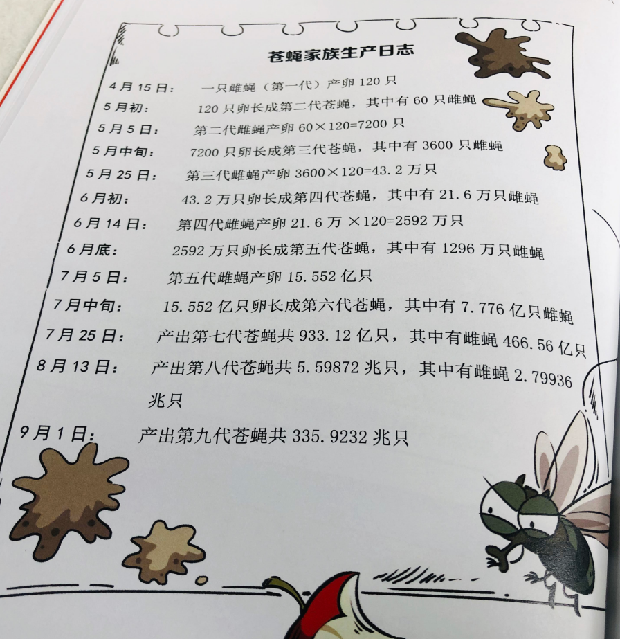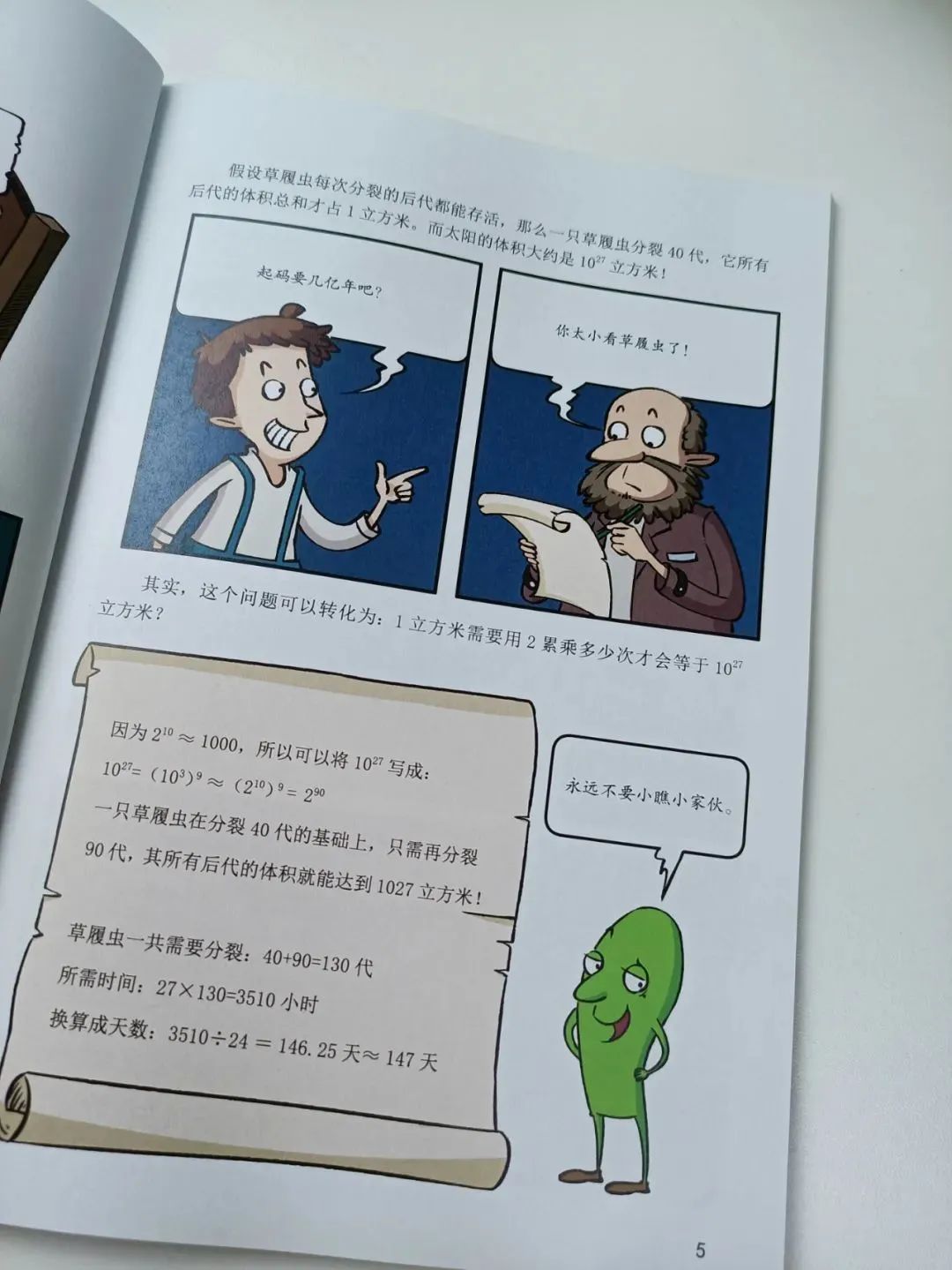再例如在第五冊《第五種運算》中的「分裂的草履蟲」提到的問題: