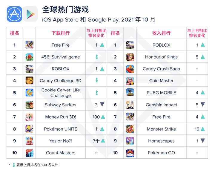 ▲ App Annie 10 月全球熱門遊戲下載、收入榜