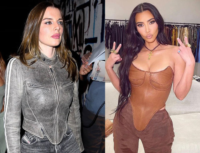盡管茱莉亞在容貌上和金差距很大,不過兩人的衣著品味卻是出奇的相似,當然這個也很好理解,畢竟她們的造型都是侃爺的「傑作」,為此外界也將茱莉亞稱為是「升級版的卡戴珊」,既然原來那個「丟」了,就索性換一個新的,但基本模式還是不變的。在共進晚餐時,茱莉亞選擇了一件皮夾克,終於不再是法國「土潮」大牌的作品了,卻仍是深受金喜歡的一個皮革品牌家的東西。