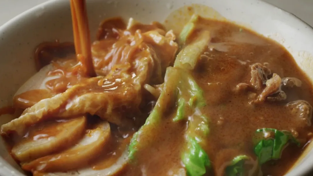 除了飲酒,還有最接地氣的傳統食物。在《風味人間2》的第三集,主題是「醬料」,講述了當年下南洋的華人如何從當地的沙爹醬發展出了更為國人熟知的沙茶醬。在片中出鏡的,就是美好生活沙茶面館。