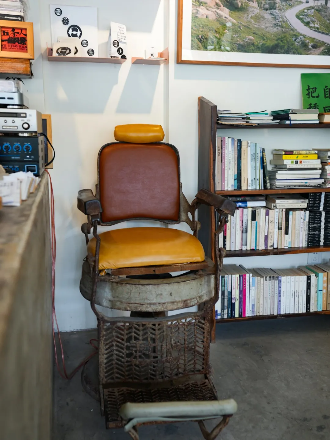 店中有兩把歷史悠久的理髮椅,阿梅買了下來,並索性讓小怣師傅和他的手藝入駐這個空間。理髮椅被放在一樓,給小怣師傅提前打個電話,他就會過來為客人理髮。