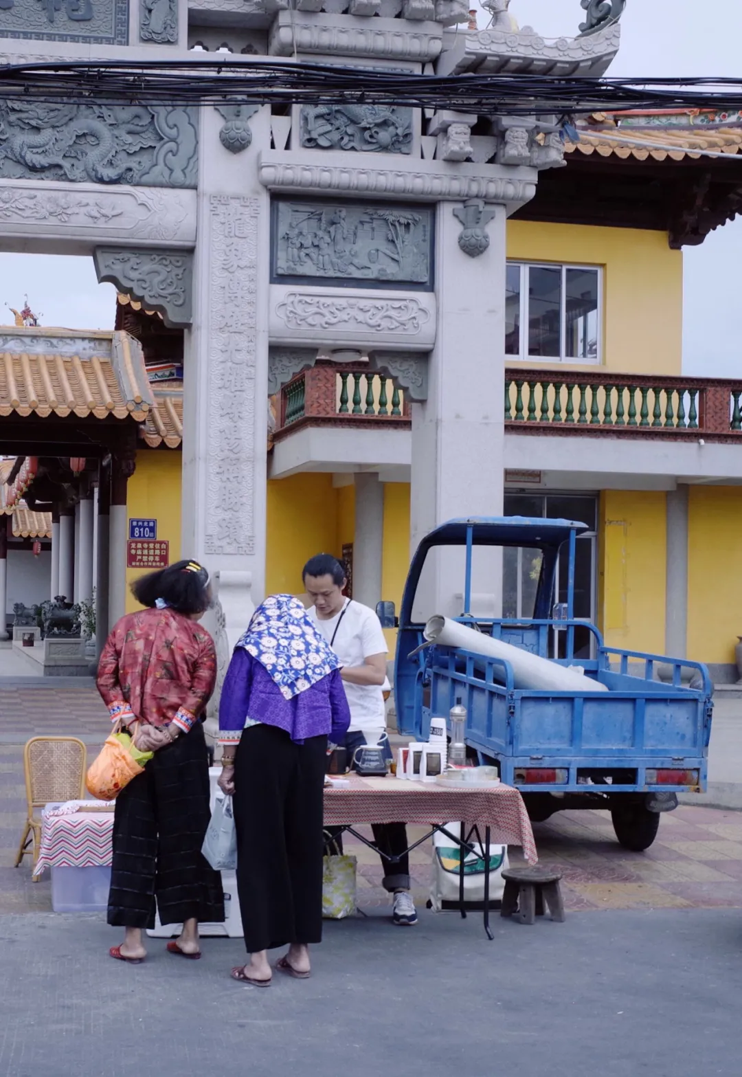 阿梅把外面的世界帶到了赤子來,亞三則把咖啡從巴浪魚帶了出去。他這些年陸陸續續地在做著「流動咖啡館」的活動,帶著咖啡到過泉州的大小廟宇,也去過臨近的鄉鎮,就為了沖一杯咖啡給那些原本可能接觸不到咖啡的人。