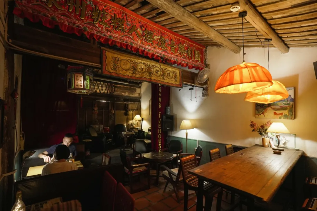 美好生活小酒館歷史較久,2006年已經初見雛形。這家店面藏匿在小巷深處,走進去才發現別有洞天。內側有一個小小的舞臺,堆放著一些樂器。蟲蟲介紹說這裡一度是泉州的文青據點,許多頗有名氣的樂隊曾在此演出。牆上掛著「一條鱸鰻來路不正」的書法,來自「頂樓馬戲團」的主唱陸晨。