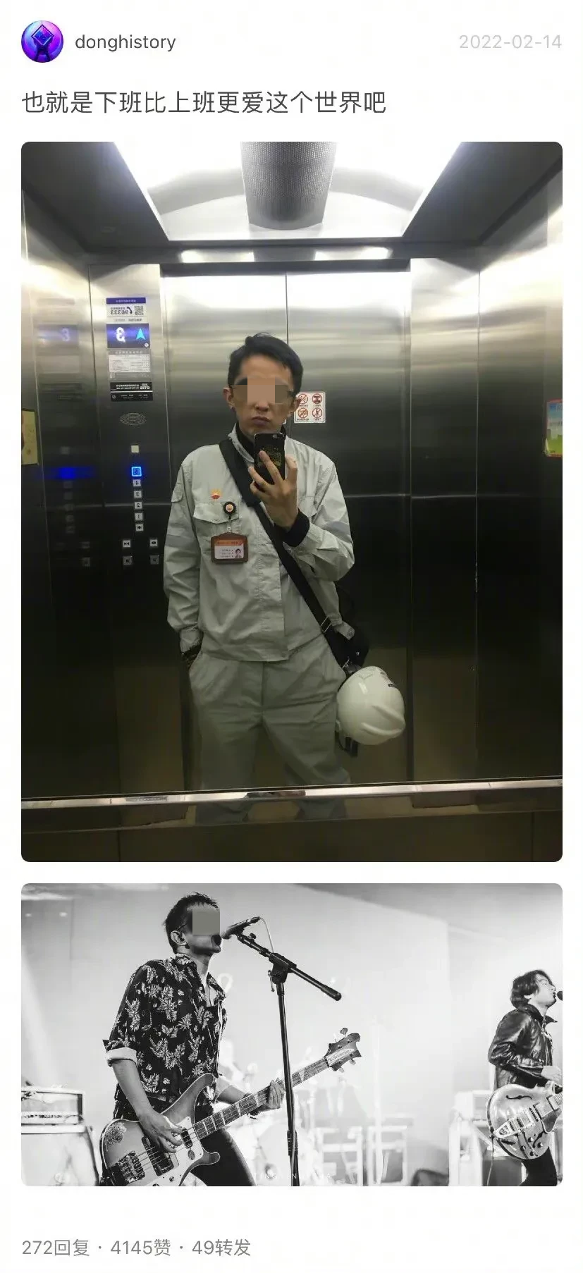 上班時是穿著制服、機械沉悶的電力工人,下班後搖身一變,成了搖滾樂隊裡最靚的貝斯手。