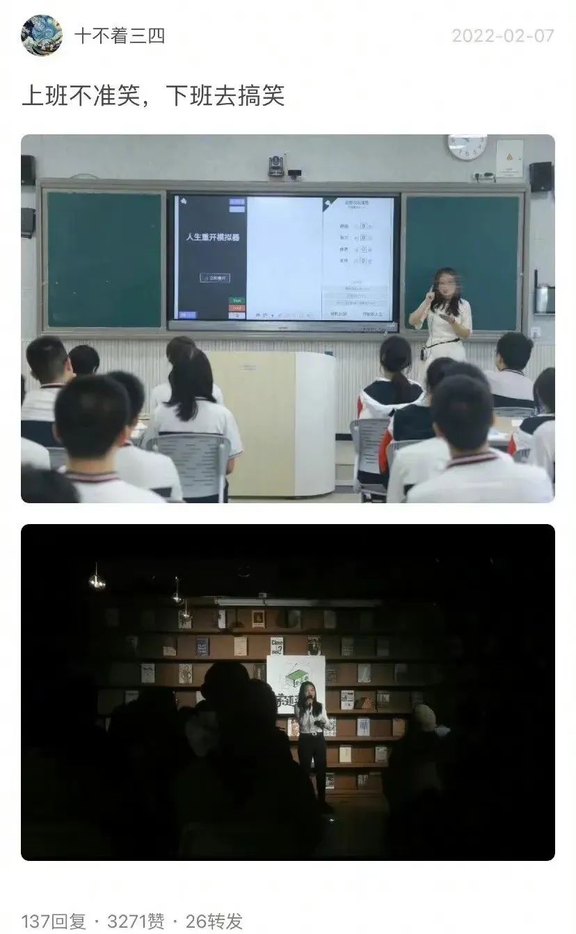 上班時是提醒學生專心上課、誰都不準笑的正經老師,下班後卻是只想搞笑的脫口秀演員。