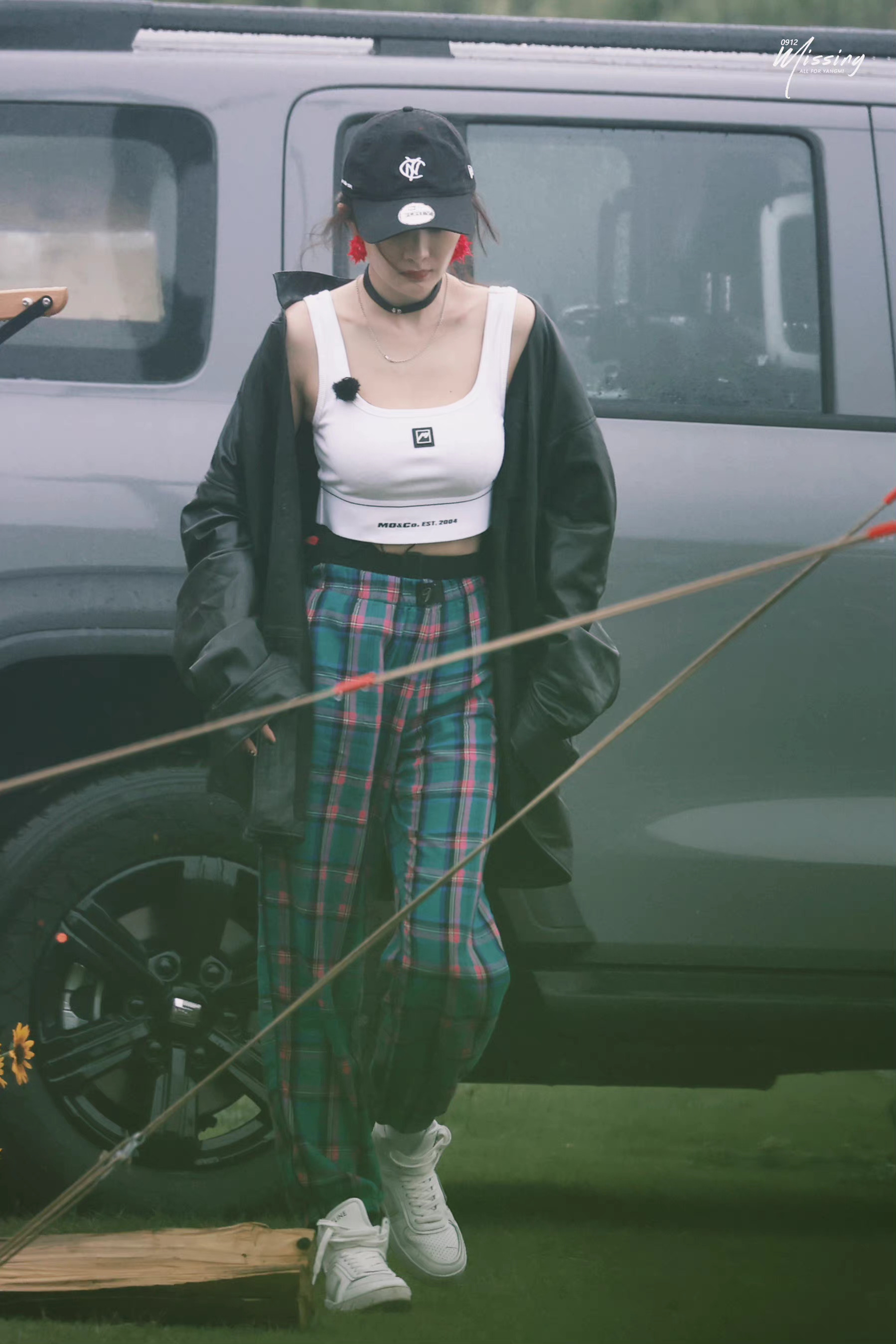 mo&co的短背心搭配維秘格紋睡褲,這兩件單品都是來自她代言的品牌。不過相比polo裙的造型,這套穿的元素過多,整體的搭配也有些垮,也只有楊冪自己的氣質氣氛加持才有一定的效果,普通人照搬會顯得很災難,所以這一套造型就不如上一套那麼出圈啦~