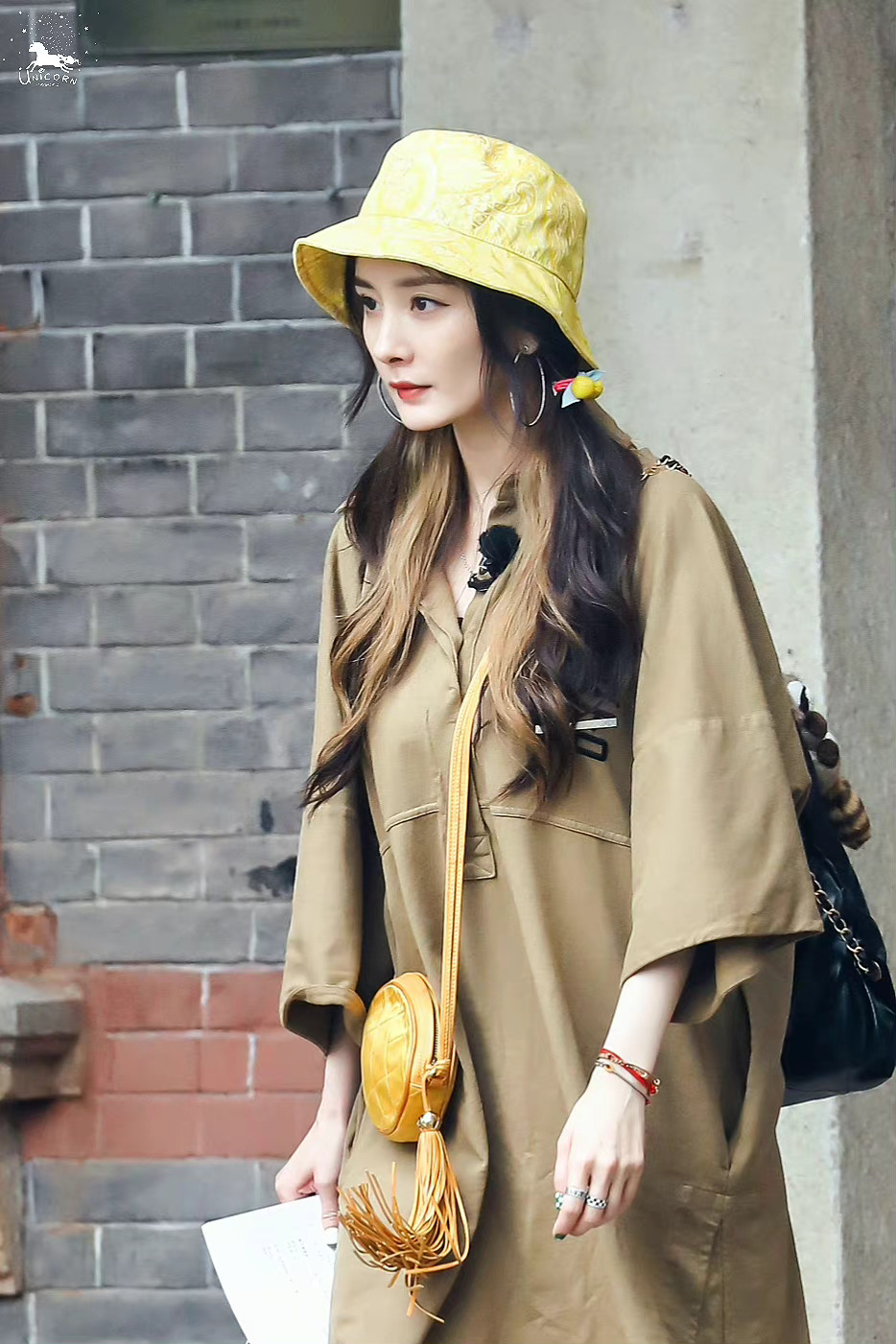 錄制綜藝的楊冪也是盡職的代言人,行李箱塞的基本上都是自己代言的品牌,除了以上這套造型裡的etro之外,以下這套造型身上的單品也基本上都是代言品牌。