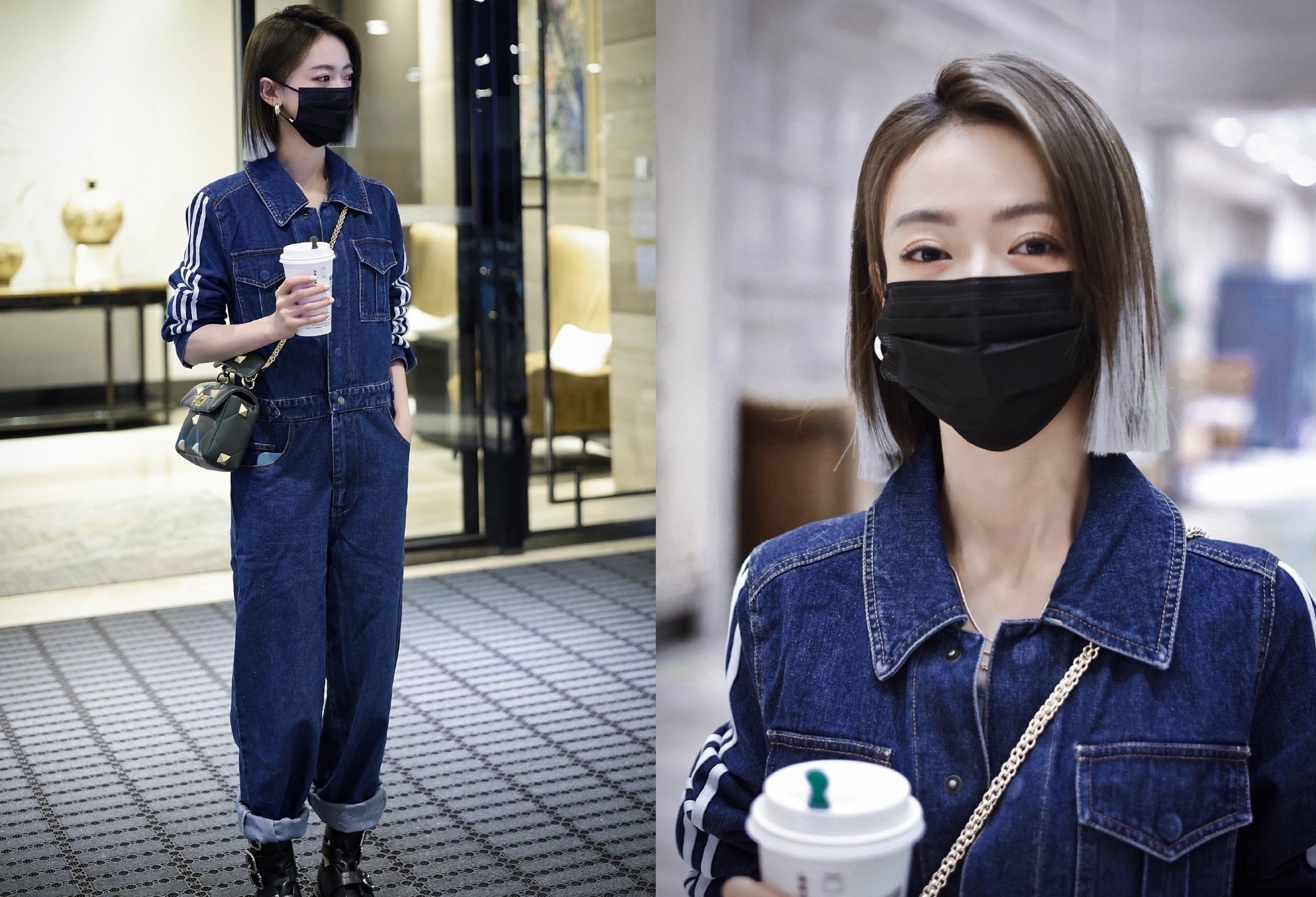 剪了短髮之後,吳謹言的辨識度更高,造型上也有了突破。利落的一刀切短髮搭配牛仔連體褲,減輕了她的干癟感和瘦弱感,更顯力量與酷感,期待她的舞臺表現啦~