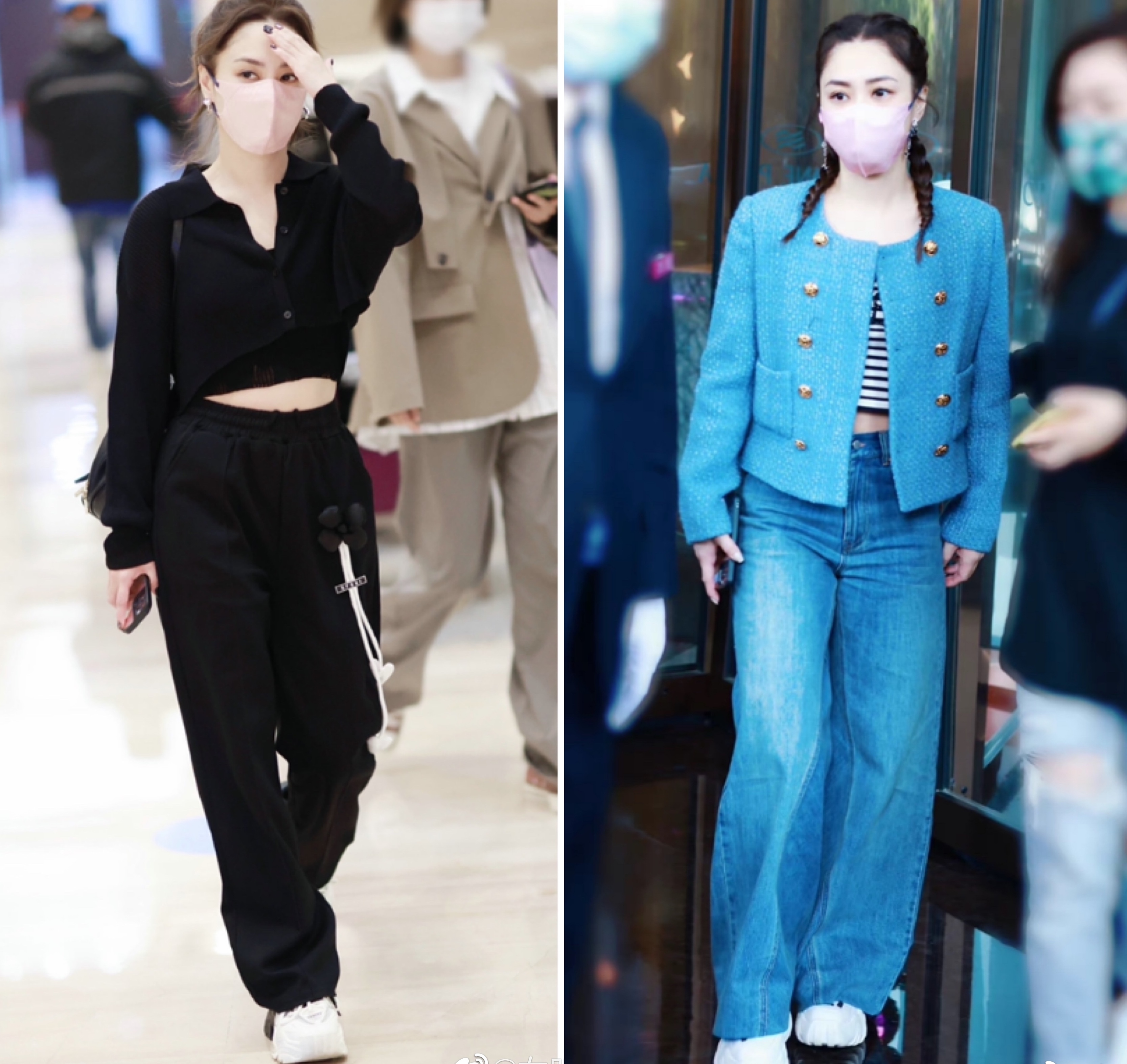 最近瘦了很多的阿嬌腰身上也沒什麼多餘的肉肉,所以各種露腰露胃的短上衣搭配高腰闊腿褲就很適合她優化比例,揚長避短。不知道這是芒果臺造型師的魔力還是阿嬌團隊的功勞,希望她能保持這樣的穿搭水準~