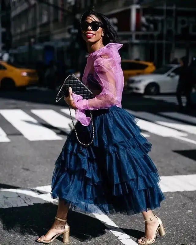 像這一身透視誇張上衣與蛋糕裙的搭配就有種「時尚的土氣」的感覺。