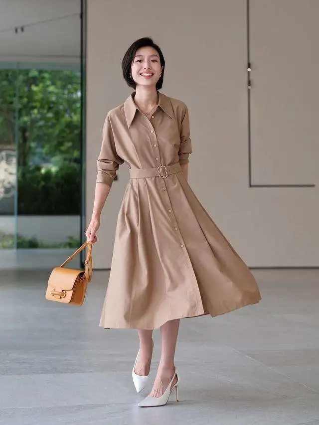對於中年女性來講,無論是微胖還是纖瘦,在穿著上都要展現一定的腰線,不僅能營造好的比例,略微的束縛還能顯得更加有精氣神,更有氣質。