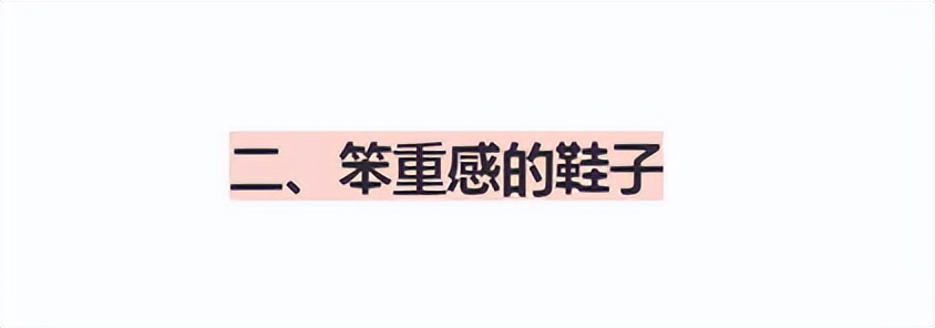 與堆積感穿搭相似的就是選擇了笨重感的鞋子,很多女性可能身高不高就想要用鞋子來提高身形,這本身沒有錯,但如果選擇不恰當的鞋子就會讓人看上去很土氣。