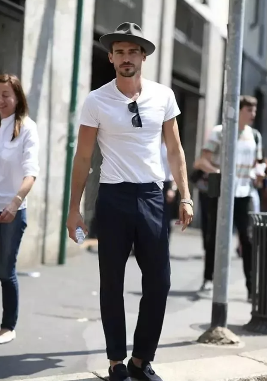 白T恤白襯衫應該是男人衣櫃裡永恒的單品。無論是單穿還是疊穿都是不錯的選擇。白T的搭配相較於白襯衫來說更加簡單休閒,不知道穿什麼的時候一件白T+一條休閒褲或者工裝褲就能出門。當做內搭也會讓整體造型更加乾淨,呈現一種高級感。